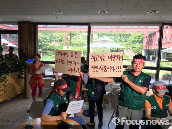 이들은 "동물보호단체들 때문에 식용개 가격이 50% 넘게 떨어졌다"며 "이런 행사 때문에 우리의 목숨이 위협받기 때문에 컨퍼런스에 참여하겠다"고 주장했다.