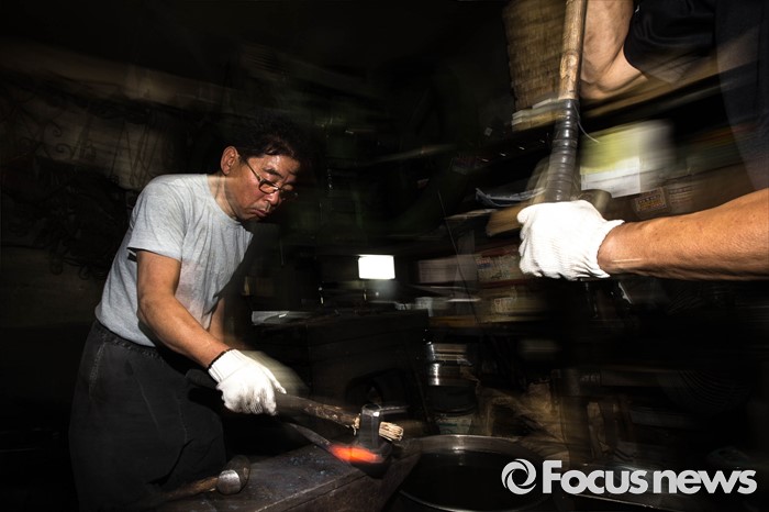 (서울=포커스뉴스) 서울이 낮 최고 36도를 기록하는 등 전국적으로 불볕더위가 기승을 부리는 5일 오전 서울 은평구 수색동에 위치한 형제대장간에서 류상준(63)씨가 화덕 앞에서 건설용 공구를 만드는 작업을 하고 있다.