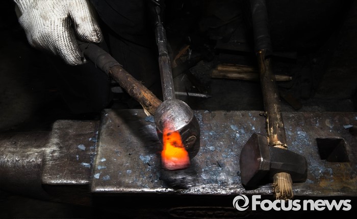 (서울=포커스뉴스) 서울이 낮 최고 36도를 기록하는 등 전국적으로 불볕더위가 기승을 부리는 5일 오전 서울 은평구 수색동에 위치한 형제대장간에서 류상준(63)씨가 화덕 앞에서 건설용 공구를 만드는 작업을 하고 있다.