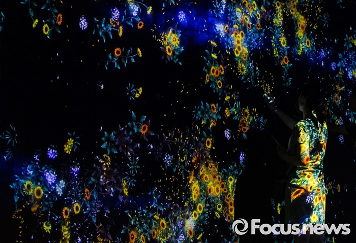(서울=포커스뉴스) 5일 오후 서울 송파구 잠실 롯데월드 내 마련된 '팀랩월드' 상설전시장을 찾은 관람객이 화려한 디지털아트를 체험하고 있다.