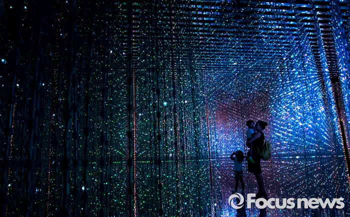 (서울=포커스뉴스) 5일 오후 서울 송파구 잠실 롯데월드 내 마련된 '팀랩월드' 상설전시장을 찾은 관람객들이 화려한 디지털아트를 체험하고 있다.