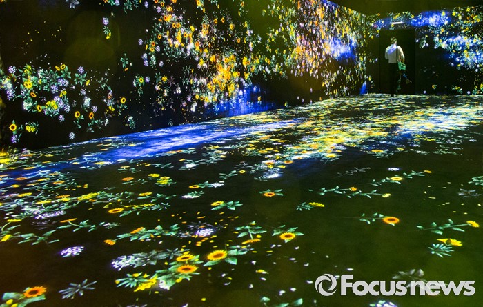 (서울=포커스뉴스) 5일 오후 서울 송파구 잠실 롯데월드 내 마련된 '팀랩월드' 상설전시장을 찾은 관람객이 화려한 디지털아트를 체험하고 있다.