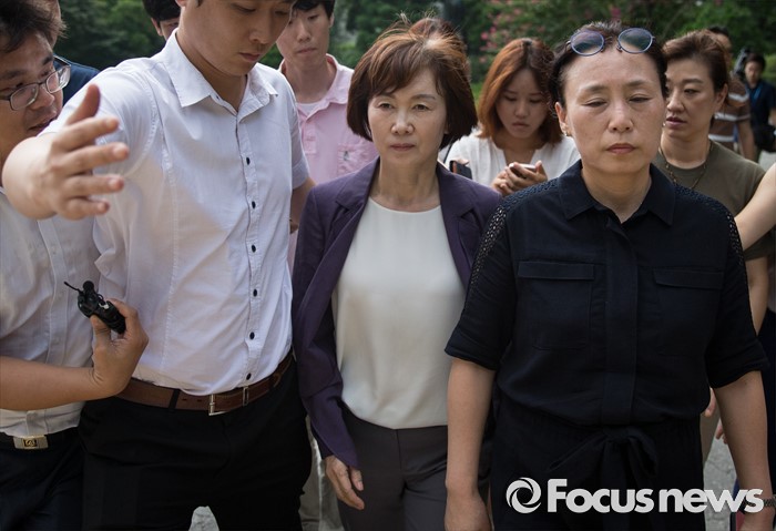 (서울=포커스뉴스) 최경희(앞줄 오른쪽 두번째) 이화여대 총장이 5일 오후 서울 서대문구 이화여대 본관을 점거농성 중인 학생들과 대화를 위해 방문했으나 만나지 못하고 돌아가고 있다. 이날 최경희 이화여대 총장은 대학 본관 점거농성 중 교수·교직원 감금 혐의를 받고 있는 학생들의 처벌을 원치 않는다며 탄원서를 경찰에 제출했고, 농성 중인 이화여대 학생들은 “이중적 행동”이라며 최 총장의 사퇴를 거듭 촉구했다.