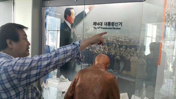 (서울=포커스뉴스) 전국 민생투어 중인 김무성 새누리당 전 대표가 5일 경남 거제시에 위치한 故 김영삼 전 대통령 기록전시관을 방문해 둘러보고 있다. <사진제공=김무성 전 대표 페이스북>