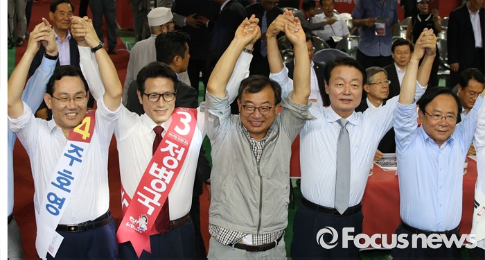 (서울=포커스뉴스) 새누리당 8·9 전당대회 전 마지막 연설회에서 당 대표 후보 4인이 당원들의 지지를 얻기 위해 치열한 경쟁을 벌였다.