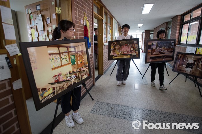 (안산=포커스뉴스) 세월호참사 이후 새로운 교육을 위한 사회적 합의에 따라 6일 오후 경기도 안산시 단원고등학교에서 교실 이전을 위한 준비 작업이 진행되고 있다. 교실 이전 준비를 돕기 위해 단원고에 온 참석자들이 교실 및 교무실을 찍은 기록물들을 단원고에서 분향소로 옮겨 가고 있다.