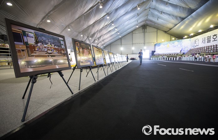 (안산=포커스뉴스) 6일 오후 경기도 안산시 세월호 참사 정부 합동 분향소에 단원고등학교 희생자 아이들의 교실에서 옮겨진 교실 기록물들이 놓여져 있다.