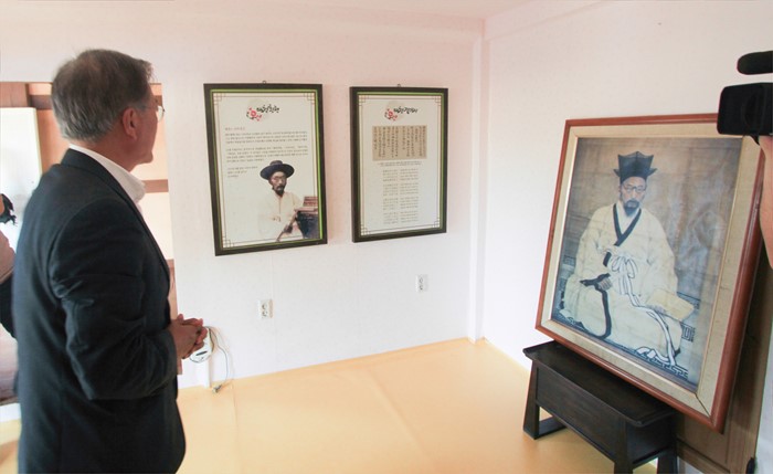(서울=포커스뉴스) 문재인 더불어민주당 전 대표가 7일 오전 전남 광양 봉강면 매천 황현 선생 생가를 방문해 내부를 둘러보고 있다. <사진제공=문재인 전 대표측>