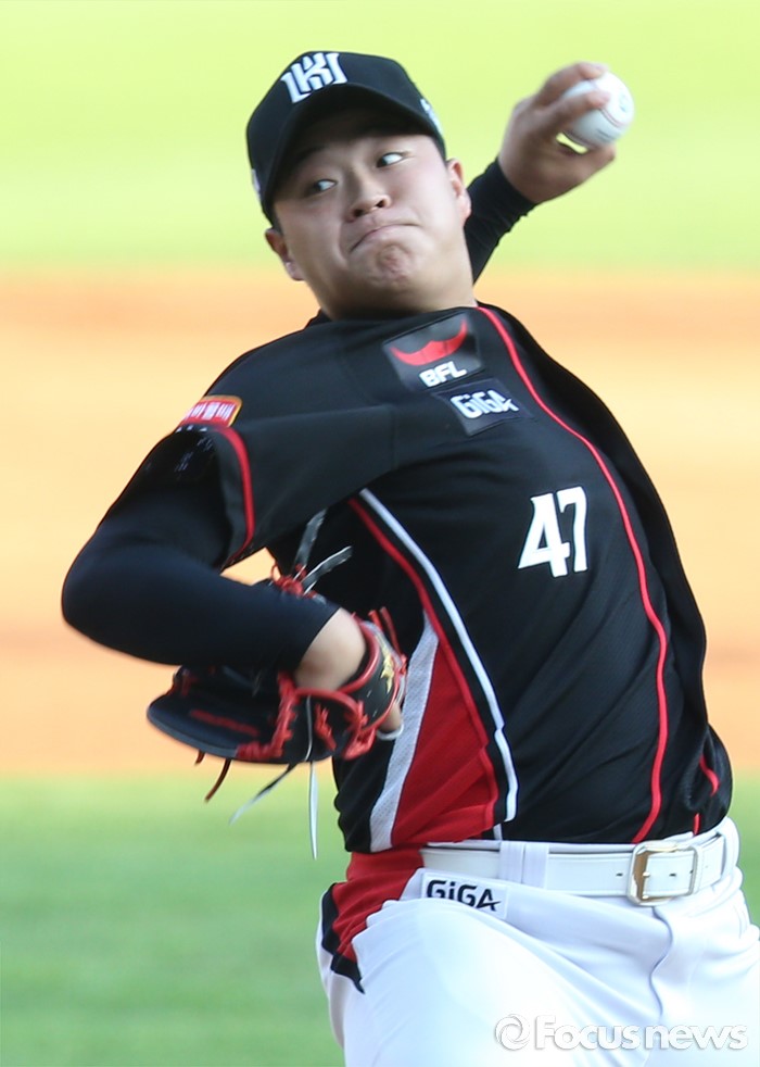 (서울=포커스뉴스) 5일 서울 잠실구장에서 열린 2016 프로야구 kt-LG 경기에서 1회말 kt 선발투수 박세진이 투구하고 있다.