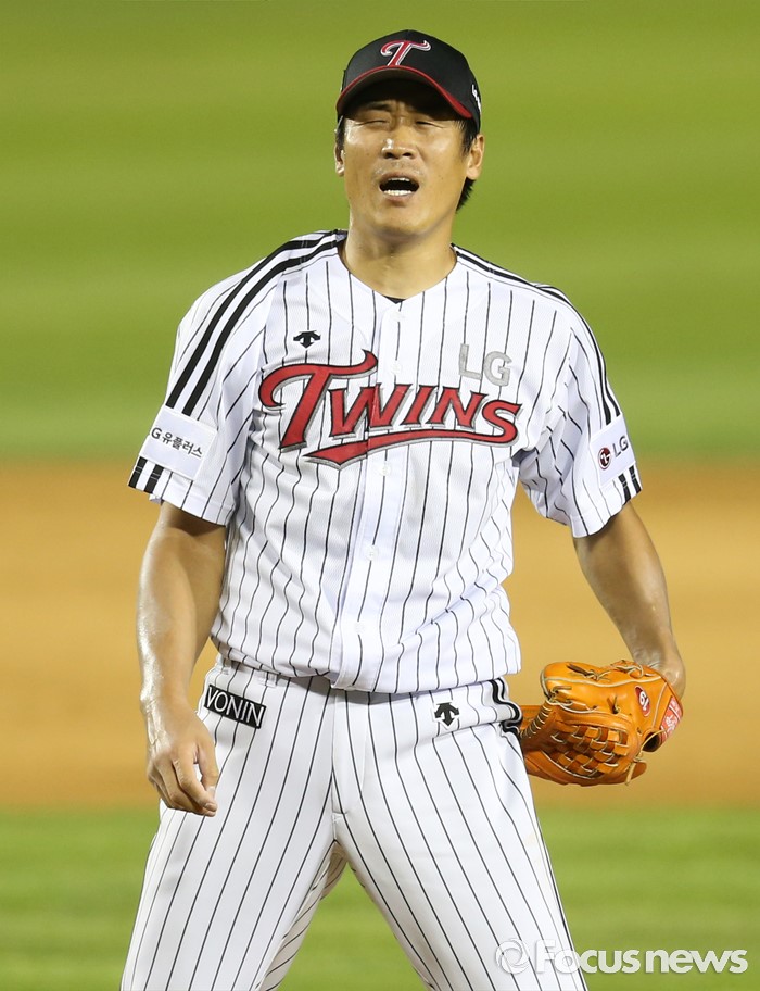 (서울=포커스뉴스) 5일 서울 잠실구장에서 열린 2016 프로야구 kt-LG 경기 8회초 2사후 LG 투수 정현욱이 kt 대타 유민상에게 던진 공이 볼 판정나자 아쉬워하고 있다.