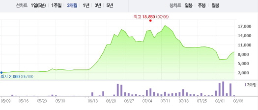 앞서 아이카이스트랩은 “SK텔레콤과 68억6415만원 규모의 중계기 납품 계약을 맺었다”고 1일 공시했다. 이는 지난해 매출액의 17.53%에 해당하는 규모고 계약기간은 오는 12월23일까지다.주가흐름<사진출처=네이버 캡쳐>