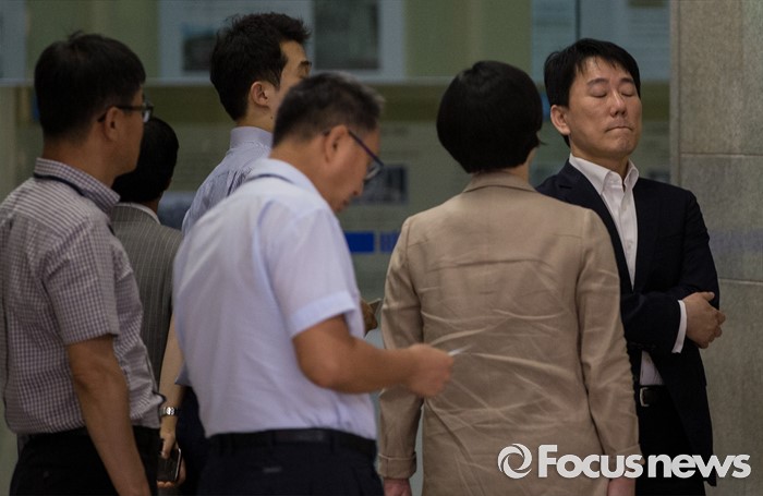 (서울=포커스뉴스) 사기·횡령·배임 등의 혐의로 피소된 이장석(맨 오른쪽) 넥센 히어로즈 대표가 8일 오전 서울중앙지검으로 소환조사를 받기 위해 출석하고 있다.
