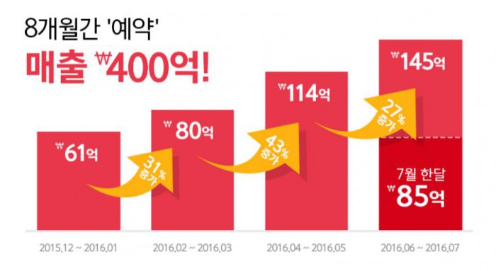 이후 '예약' 건수는 폭발적으로 증가하면서 지난 2~4월 3개월간 매출은 136억원을 기록했다. 또 다음 3개월(5~7월)은 직전 3개월에 비해 49.2%가 증가했다.