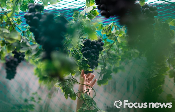 (서울=포커스뉴스) 8일 오전 서울 광화문광장에서 열린 '2016 포도데이' 행사에 참석한 한 시민이 포도를 따고 있다.