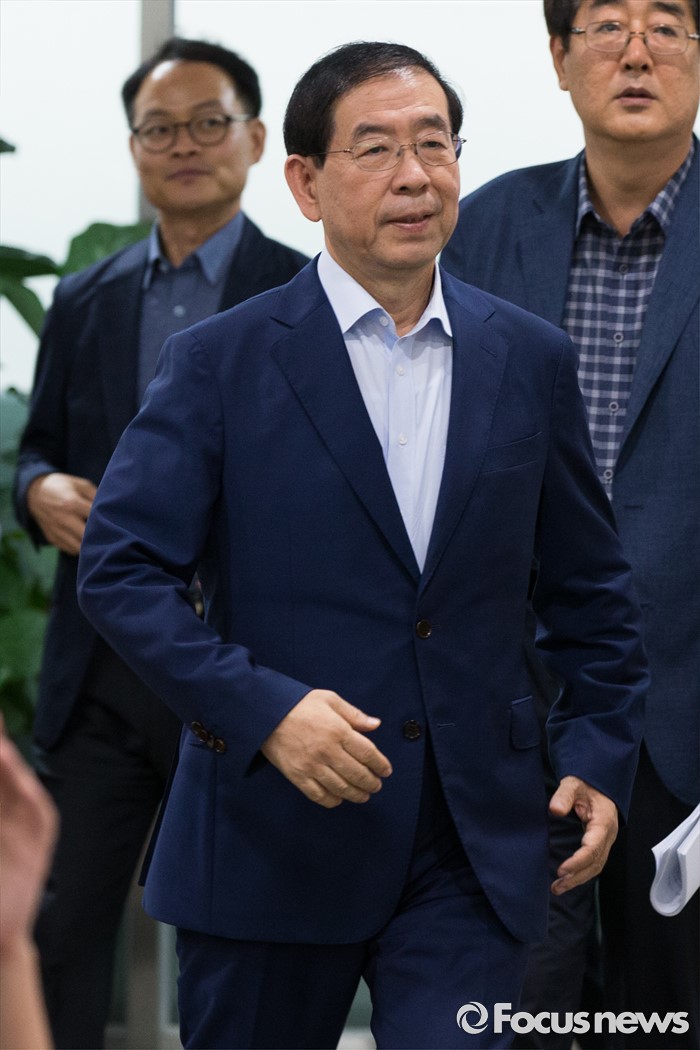(서울=포커스뉴스) 박원순 서울시장이 8일 오후 서울 중구 서울시청 브리핑룸에서 청년수당과 관련한 박근혜 대통령과 면담을 요청하는 기자회견을 위해 들어서고 있다.