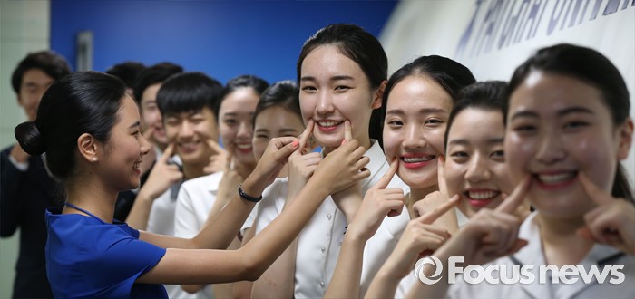 (대전=포커스뉴스) 8일 오후 대전 배재대학교에서 열린 제3회 예비승무원대회 예선에 참가한 고등학생들이 기내 안전·예절 교육을 받고 있다.