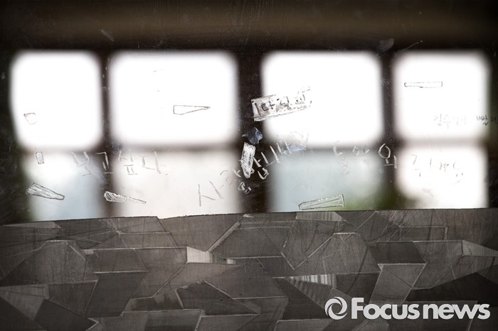 (안산=포커스뉴스) 세월호 참사에서 희생된 단원고등학교 학생들의 교실 이전 절차가 시작된 8일 오후, 아이들이 생활 했던 단원고 교실 복도 창문에 가족과 친구, 시민들이 남기고 갔던 메시지들이 떼어지고 그 흔적들만 남아 있다.