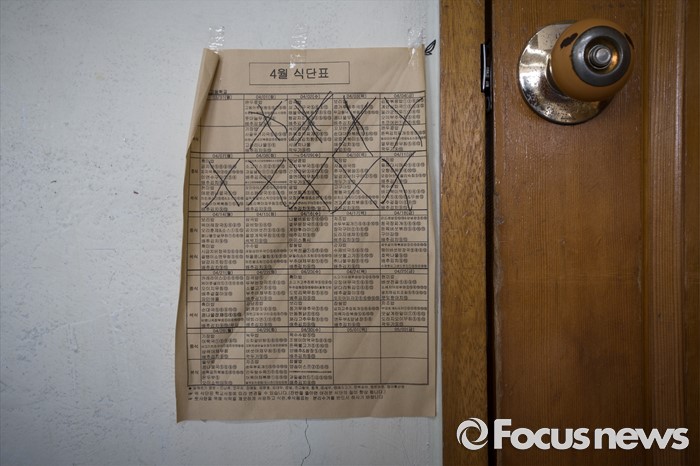 (안산=포커스뉴스) 세월호 참사에서 희생된 단원고등학교 학생들의 교실 이전 절차가 시작된 8일 오후 경기도 안산시 단원고등학교 기억교실 벽면에 2년 전'4월 식단표가' 보이고 있다.