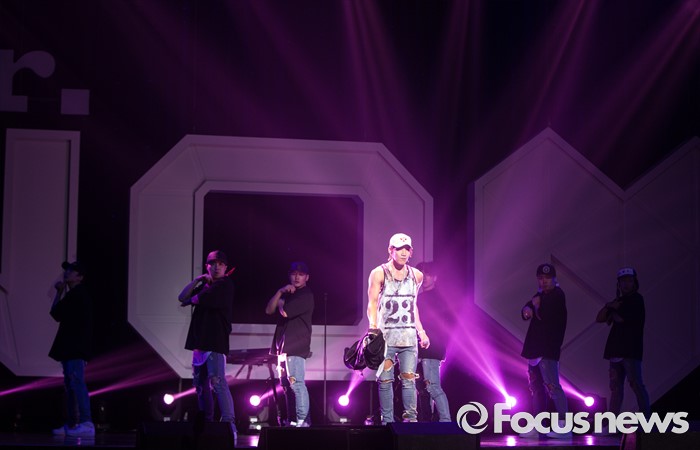 (서울=포커스뉴스) 8일 오후 서울 광진구 예스24 라이브홀에서 가수 준케이가 첫 솔로 미니앨범 쇼케이스를 열고 무대를 선보이고 있다.