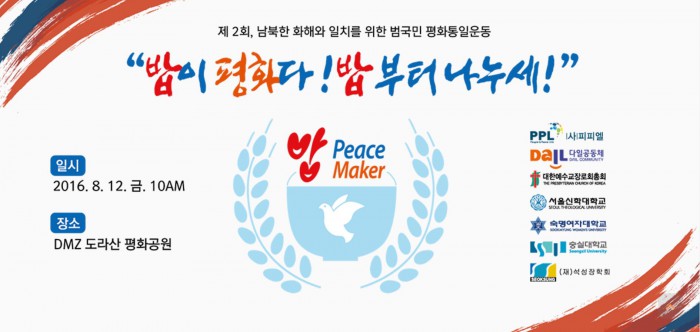 지난해에 이어 올해도 개최되는 밥 피스메이커 행사는 화해와 평화통일 운동 메시지를 담은 대국민 성명 발표, 현장에서 밥상을 차려 함께 밥을 먹는 밥상 나눔 퍼포먼스로 진행된다.