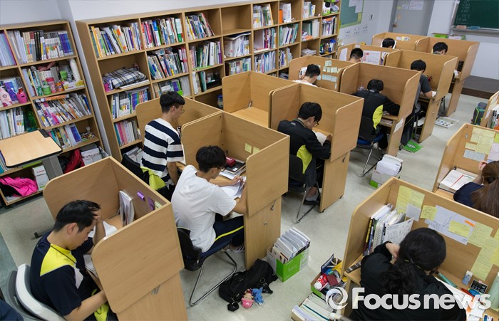 (안성=포커스뉴스) 2017학년도 대학수학능력시험을 101일 앞둔 8일 오후 경기도 안성종로기숙학원에서 재수생들이 자습을 하고 있다.