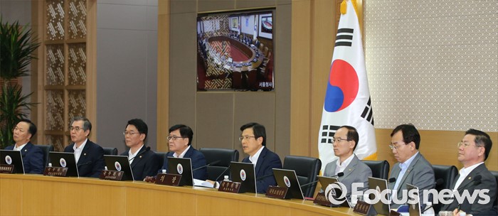 (세종=포커스뉴스) 황교안(오른쪽 네 번째) 국무총리가 9일 오전 세종시 정부세종청사 국무회의장에서 서울-세종 영상회의로 열린 국무회의를 주재하고 있다.
