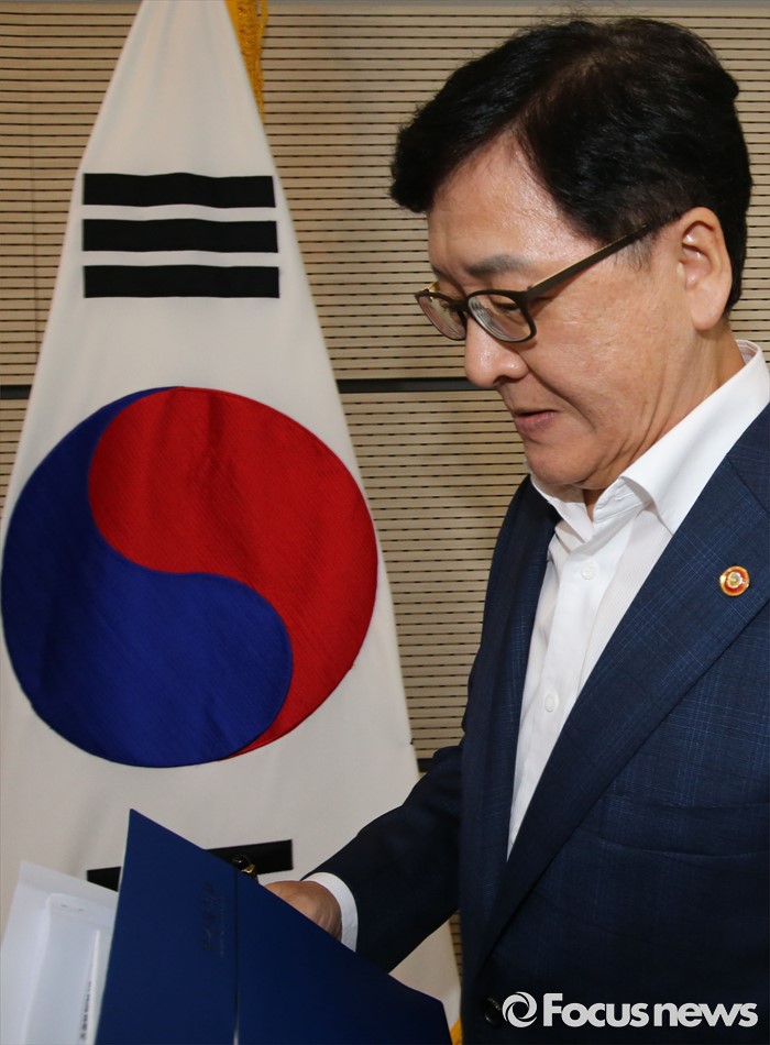 (세종=포커스뉴스) 정진엽 보건복지부 장관이 9일 오전 세종시 정부세종청사 보건복지부 공용브리핑룸에서 박원순 서울시장의 청년수당에 대한 복지부의 입장을 발표하고 회견장을 나서고 있다. 정 장관은 '박 시장이 박 대통령에게 청년수당 관련 대화를 제의한 것에 진정성이 없는 제스처'라고 밝혔다.
