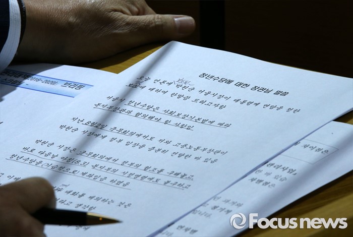 (세종=포커스뉴스) 정진엽 보건복지부 장관이 9일 오전 세종시 정부세종청사 보건복지부 공용브리핑룸에서 박원순 서울시장의 청년수당에 대한 복지부의 입장을 발표하고 있다. 정 장관은 '박 시장이 박 대통령에게 청년수당 관련 대화를 제의한 것에 진정성이 없는 제스처'라고 밝혔다.