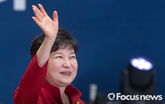 (서울=포커스뉴스) 박근혜 대통령이 9일 오후 서울 송파구 잠실실내체육관에서 열린 새누리당 4차 전당대회에 참석해 당원들을 향해 인사하고 있다.