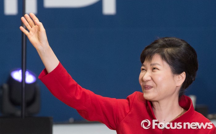 (서울=포커스뉴스) 박근혜 대통령이 9일 오후 서울 송파구 잠실실내체육관에서 열린 새누리당 4차 전당대회에 참석해 당원들을 향해 인사하고 있다.