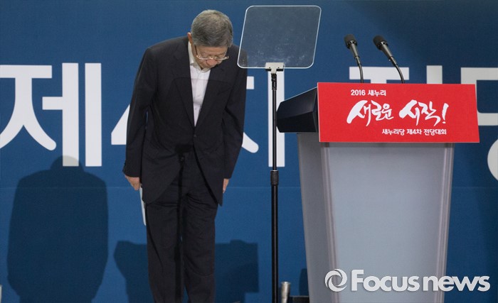 (서울=포커스뉴스) 9일 오후 서울 송파구 잠실실내체육관에서 열린 새누리당 4차 전당대회에 참석한 김희옥 혁신비대위원장이 인사말에 앞서 인사하고 있다.