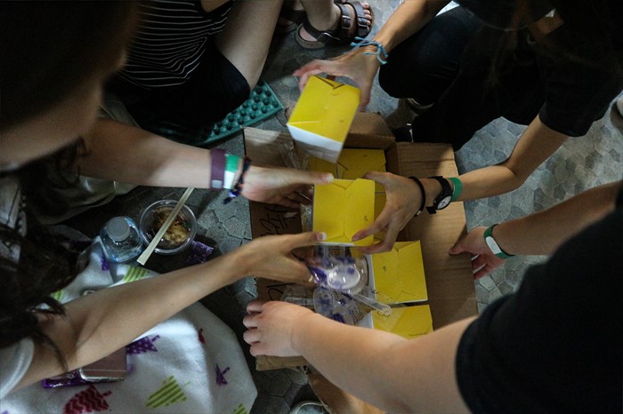 | △ 컵밥으로 농성 이어가는 이대 학생들 |
