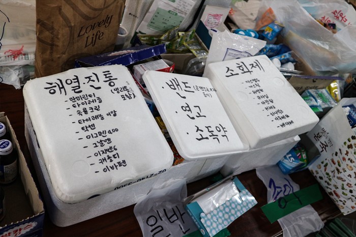 (서울=포커스뉴스) 9일 오전 서울 마포구 이화여대에서 최경희 총장 사퇴를 요구하며 농성을 벌이고 있는 본관 내부 모습이 공개됐다. 농성을 이어가는 학생들을 위한 비상약품이 보이고 있다. <사진제공=이화여대언론팀>