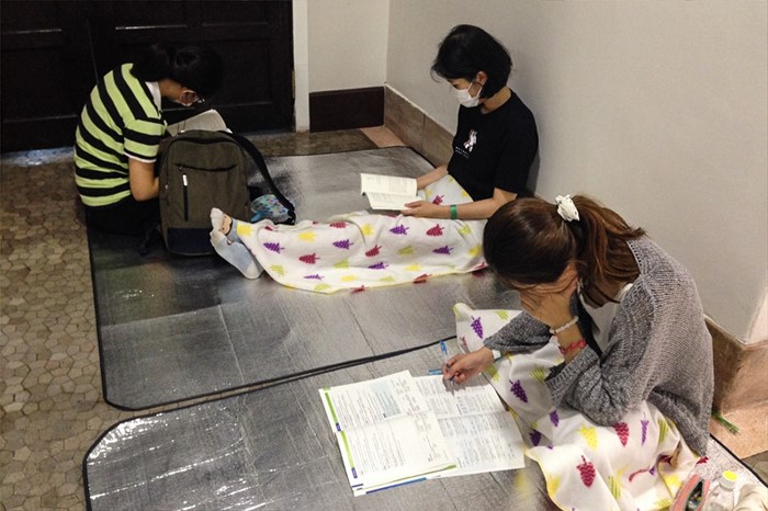 | △ 총장 퇴진 요구 농성, '공부는 틈틈이' |