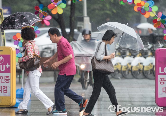 (서울=포커스뉴스) 9일 오후 서울 동작구 이수역 인근에 시민들이 비를 피해 발걸음을 재촉하고 있다.