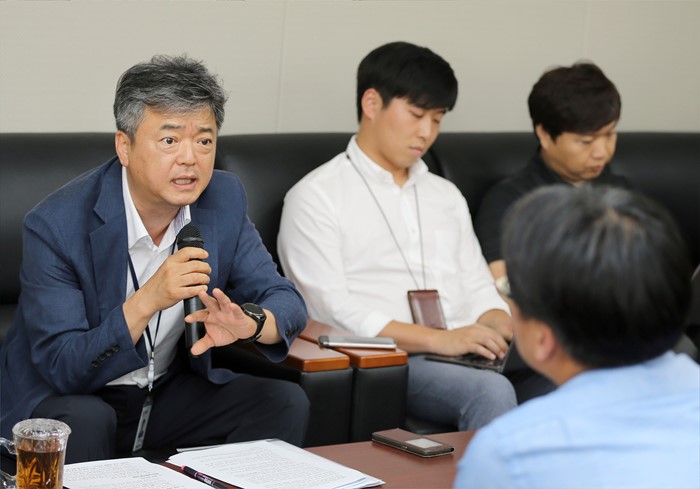 (세종=포커스뉴스) 이인호 산업통상자원부 통상차관보가 9일 오후 세종시 정부세종청사 산업부 기자실에서 금일 오전 개최한 수입규제 대응 간담회에서 논의된 수입규제 동향 및 효과적인 대응방안에 대한 브리핑을 하고 있다. <사진제공=산업통상자원부>