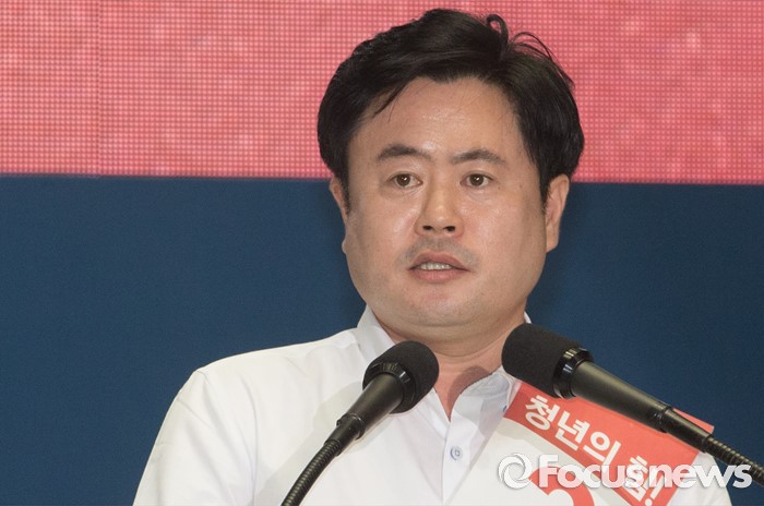 (서울=포커스뉴스) 9일 오후 서울 송파구 잠실실내체육관에서 열린 새누리당 4차 전당대회에 참석한 이부형 청년 최고위원 후보가 정견발표를 하고 있다.