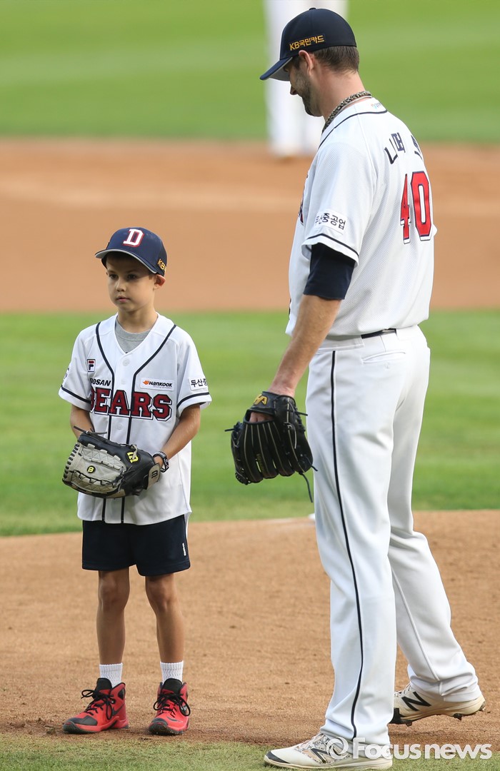| △ 두산 투수 니퍼트의 아들 케이든 시구-포스가 남달라요 |