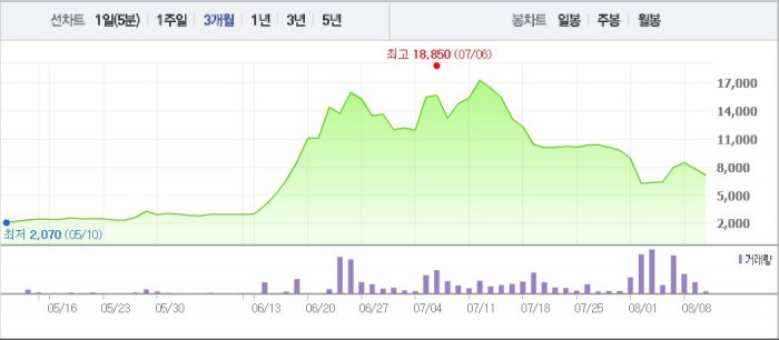 앞서 아이카이스트랩은 “SK텔레콤과 68억6415만원 규모의 중계기 납품 계약을 맺었다”고 1일 공시했다. 이는 지난해 매출액의 17.53%에 해당하는 규모로, 계약기간은 오는 12월23일까지다.주가흐름<사진출처=네이버 캡쳐>