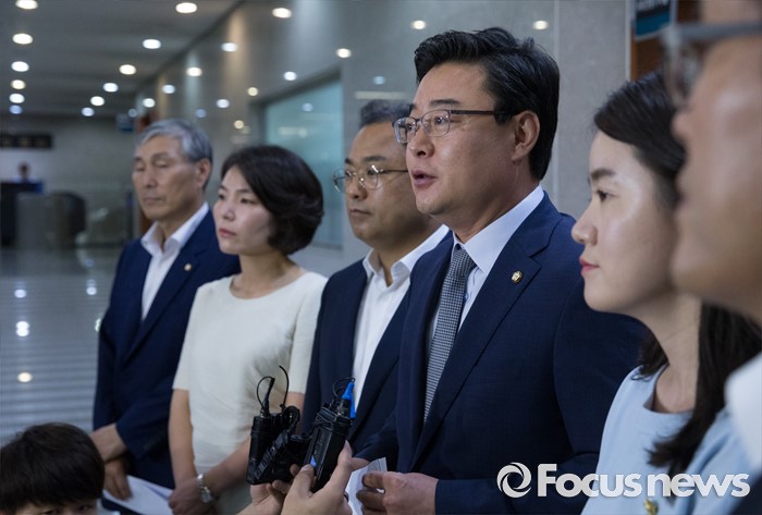 (서울=포커스뉴스) 새누리당 초선 의원들이 10일 오전 서울 여의도 국회 정론관에서 더불어민주당 초선 의원들의 방중 관련 기자회견을 마친 뒤 취재진 질문에 답하고 있다. 왼쪽부터 조훈현, 전희경, 권석창, 김성원, 신보라, 송석준 의원.
