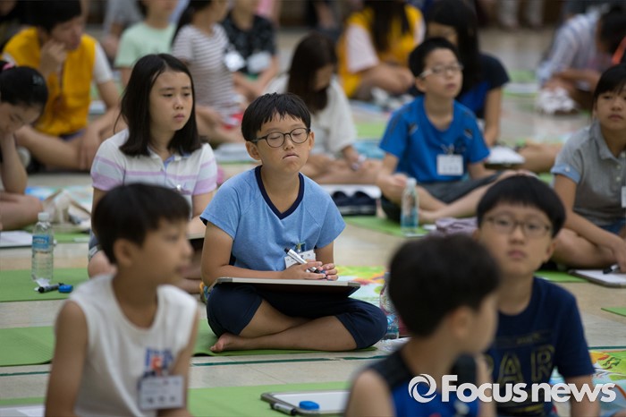 (서울=포커스뉴스) 10일 오전 서울 성동구 성동구청 대강당에서 열린 '성동 어린이 독서 골든벨'에서 초등학생들이 문제를 풀고 있다.