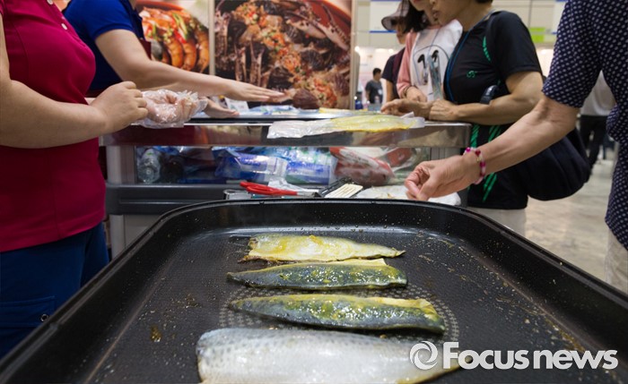 (서울=포커스뉴스) 10일 오후 서울 강남구 코엑스에서 열린 '2016 한가위 명절선물상품전'을 찾은 시민들이 수산물 선물세트를 둘러보고 있다.