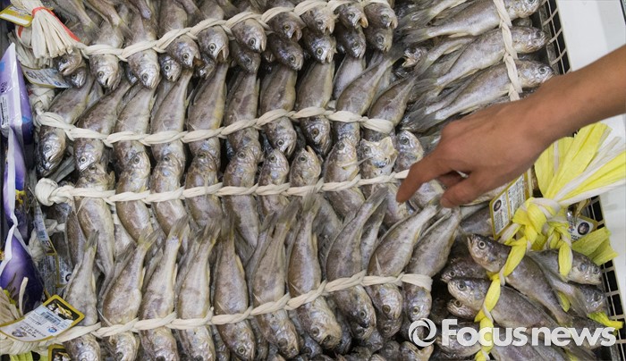 (서울=포커스뉴스) 10일 오후 서울 강남구 코엑스에서 열린 '2016 한가위 명절선물상품전'을 찾은 한 시민이 굴비선물세트를 둘러보고 있다.