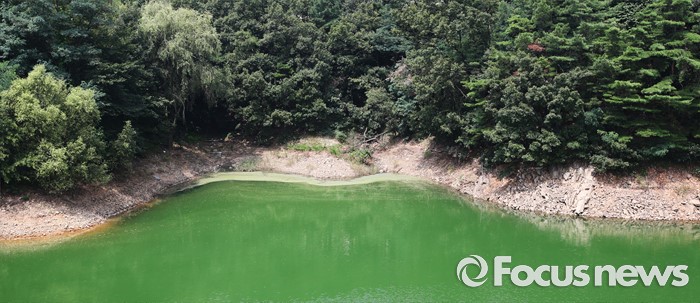 (청주=포커스뉴스) 10일 충북 청주시 문의면 일대 대청호에서 녹조와 녹조부유물이 보이고 있다. 지난 3일 대청호 전 수역에 조류 경보 '관심단계'가 발령됐다. 문의지역의 유해 남조류 세포수가 1ml당 7470을 기록했다.