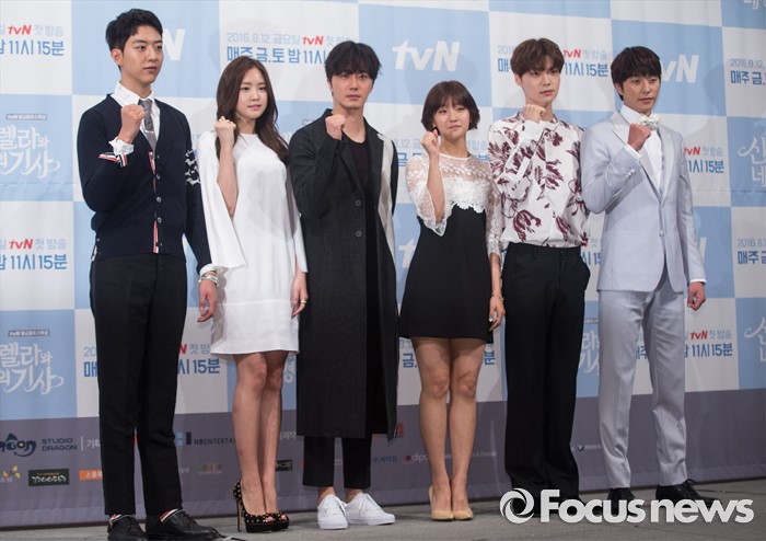 (서울=포커스뉴스) 10일 오후 서울 강남구 임피리얼 팰리스호텔에서 열린 tvN 금토드라마 '신데렐라와 네 명의 기사' 제작발표회에 참석한 배우 이정신(왼쪽부터), 손나은, 정일우, 박소담, 안재현, 최민이 포토타임을 갖고 있다.