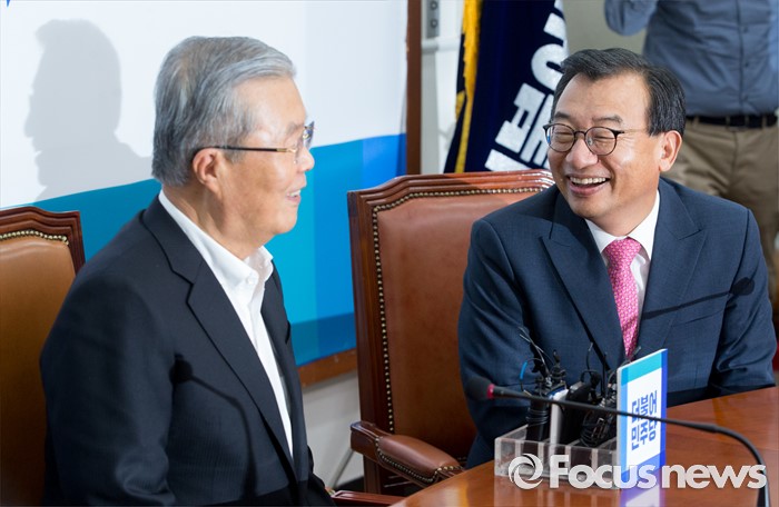 (서울=포커스뉴스) 10일 오후 서울 여의도 국회에서 이정현(오른쪽) 새누리당 신임 대표가 김종인 더불어민주당 비대위 대표와 만나 면담을 하고 있다.