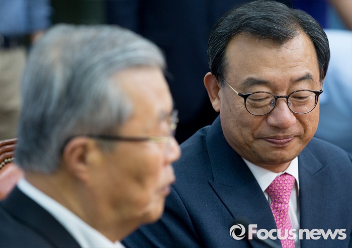 | △ 김종인 발언 듣는 이정현 신임 대표 |