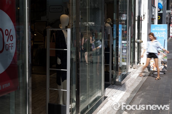 (서울=포커스뉴스) 10일 오후 서울 중구 명동의 한 옷가게에서 개문냉방 영업을 하고 있다. 지난 9일 폭염으로 인한 전력 수요 급증에 정부가 오는 11일부터 개문냉방 업소 단속에 나선다고 밝혔다.