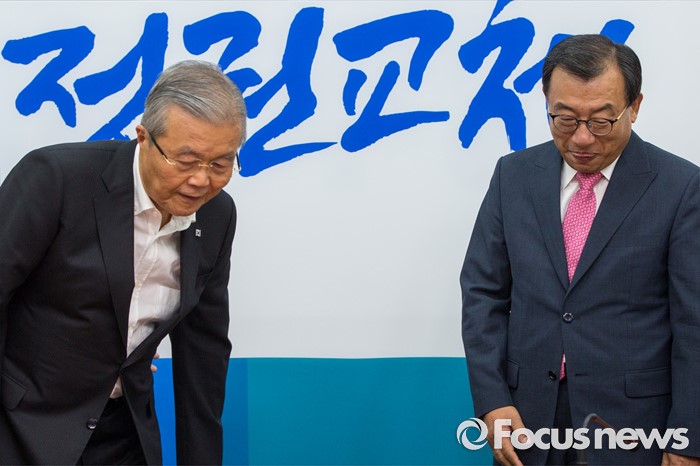 (서울=포커스뉴스) 김종인(왼쪽) 더불어민주당 비상대책위 대표와 이정현 새누리당 대표가 10일 오후 서울 여의도 국회에서 면담을 하기 위해 자리에 앉고 있다.