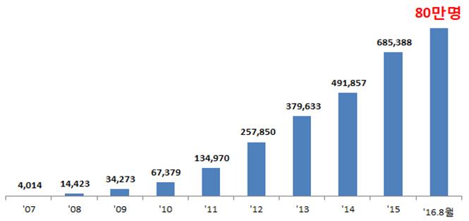 중기중앙회는 노란우산공제가 출범 9년만에 누적가입자 80만명을 달성했다고 10일 밝혔다.